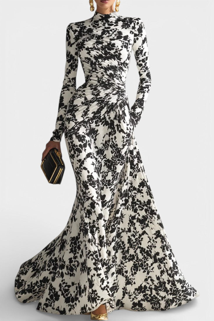 Une allure sophistiquée qui conjugue féminité et élégance graphique. Amada séduit par son imprimé floral noir et blanc au contraste affirmé, son col montant raffiné et sa coupe portefeuille qui structure délicatement la silhouette. Le buste ajusté met en valeur la taille tandis que la jupe longue et fluide accompagne le mouvement avec grâce. Une pièce distinguée, idéale pour celles qui recherchent une élégance intemporelle et affirmée.